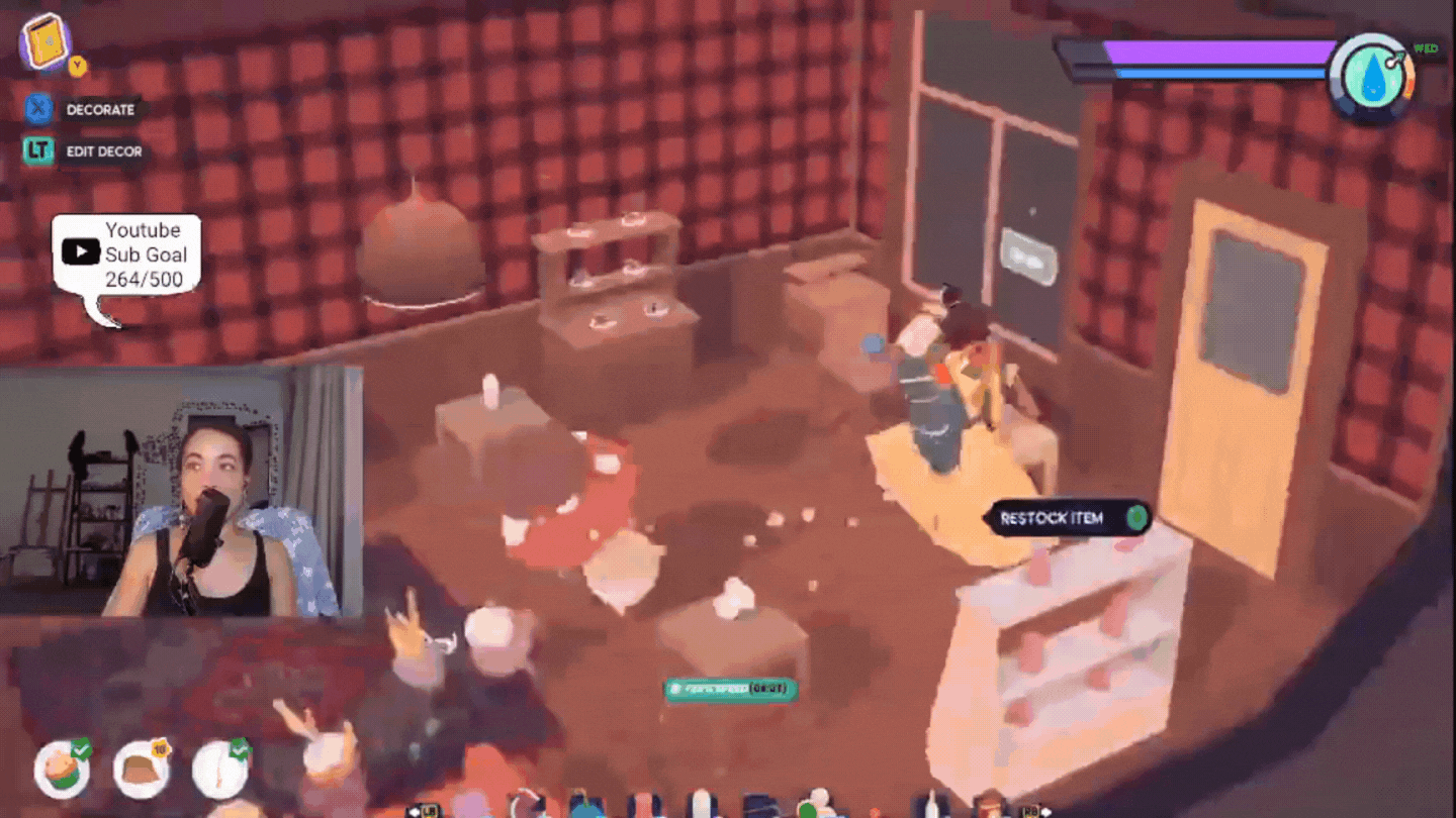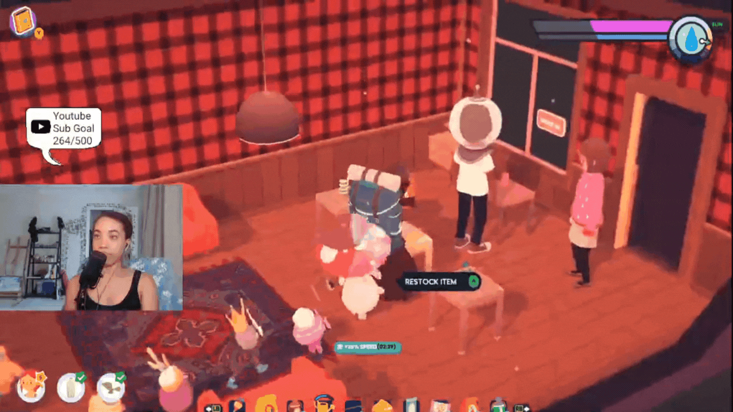 When you get free time while visitors are looking around, you can cook and restock an item.